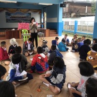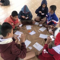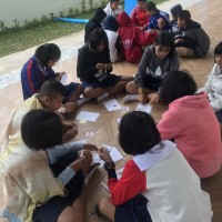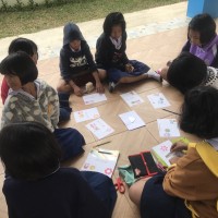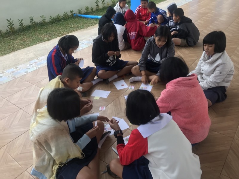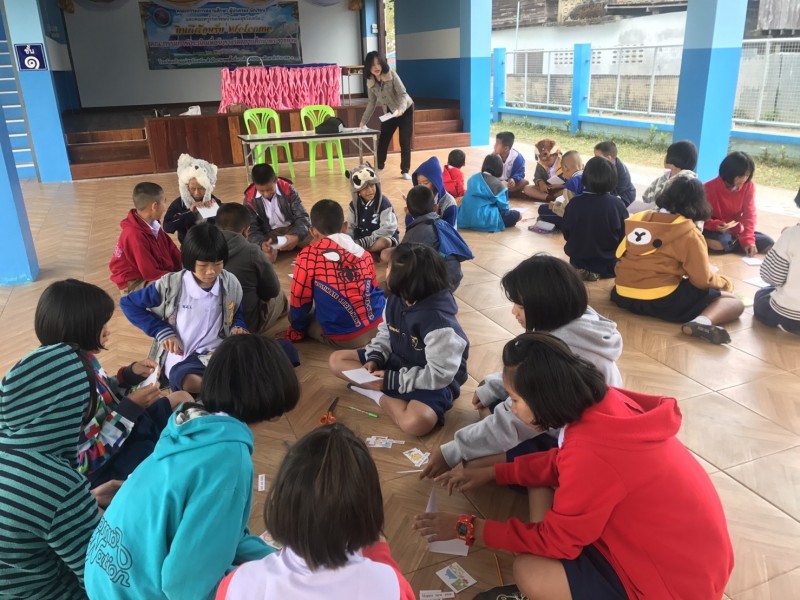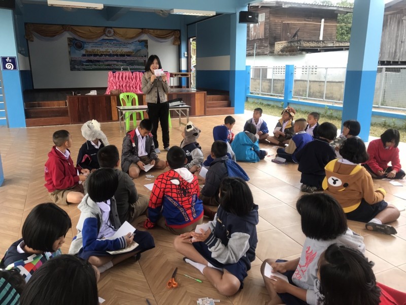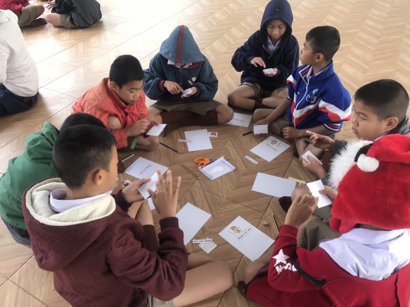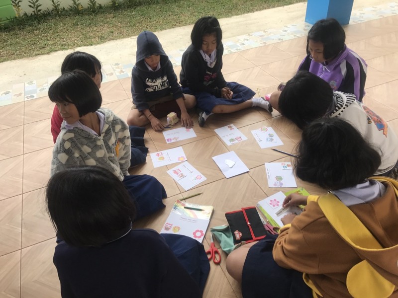 วิทยากรจากศูนย์การศึกษานอกโรงเรียนมาสอนนักเรียนทำการ์ดปีใหม่