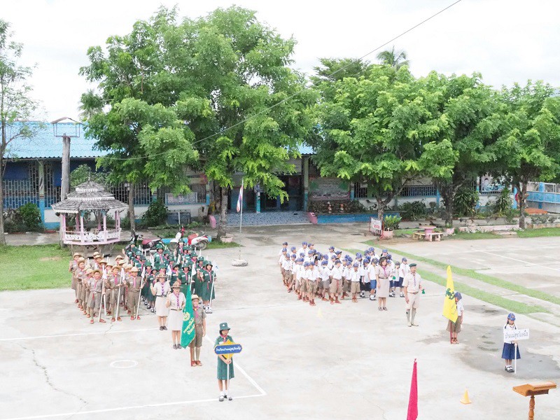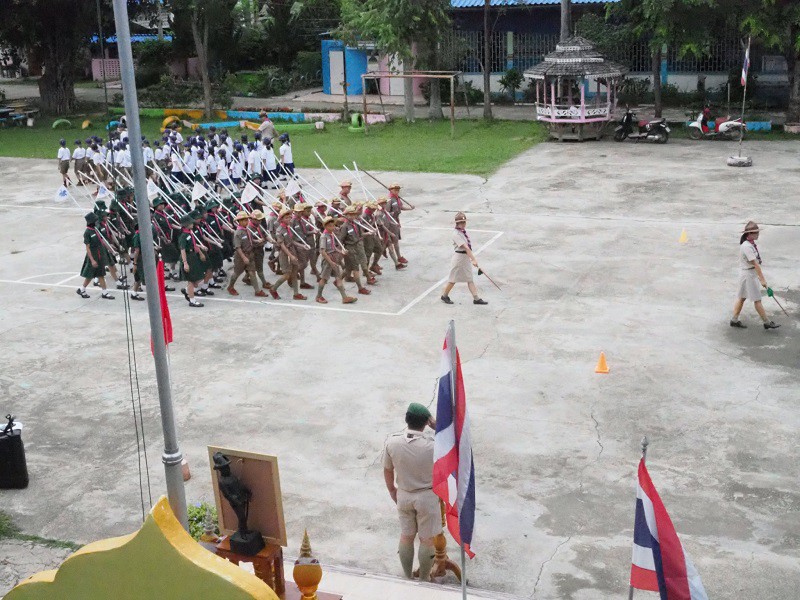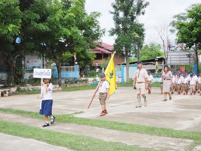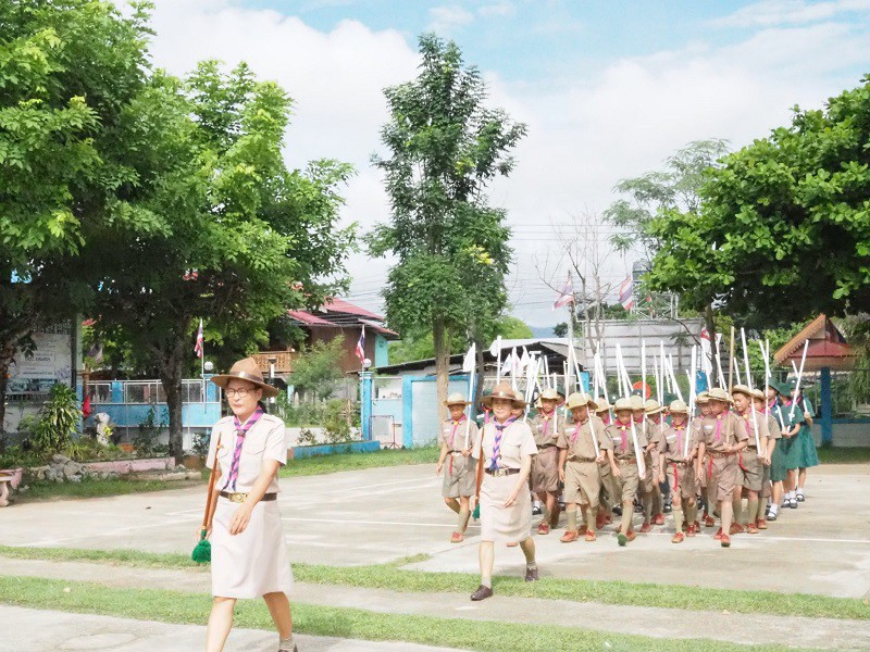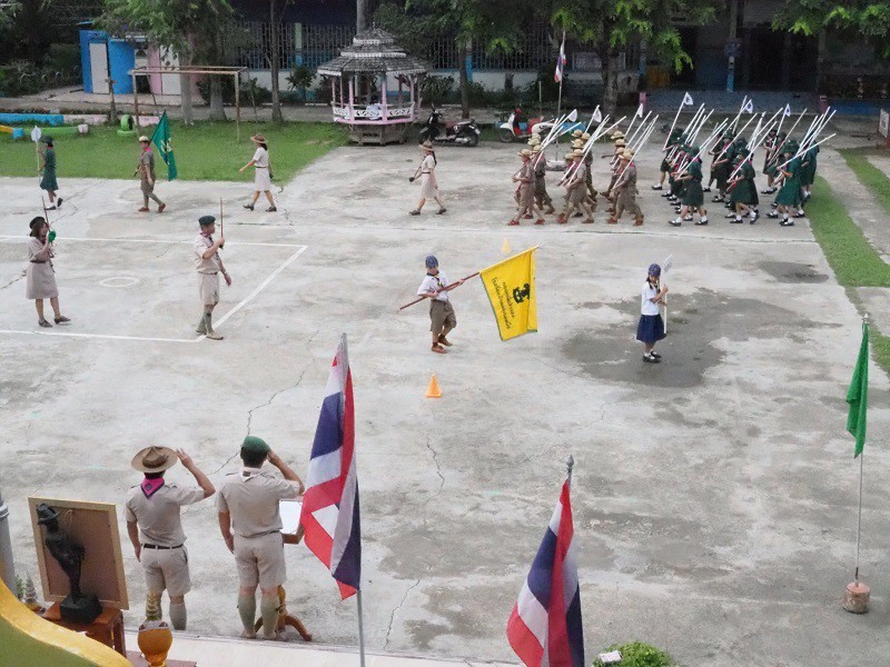 ทบทวนคำปฏิญาณและสวนสนาม วันสถาปนาคณะลูกเสือแห่งชาติ ปีการศึกษา 2566
