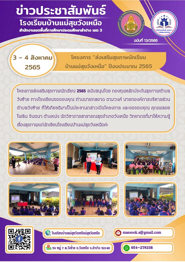 จดหมายข่าวประชาสัมพันธ์โครงการโรงเรียนส่งเสริมสุขภาพ ปีการศึกษา 2565